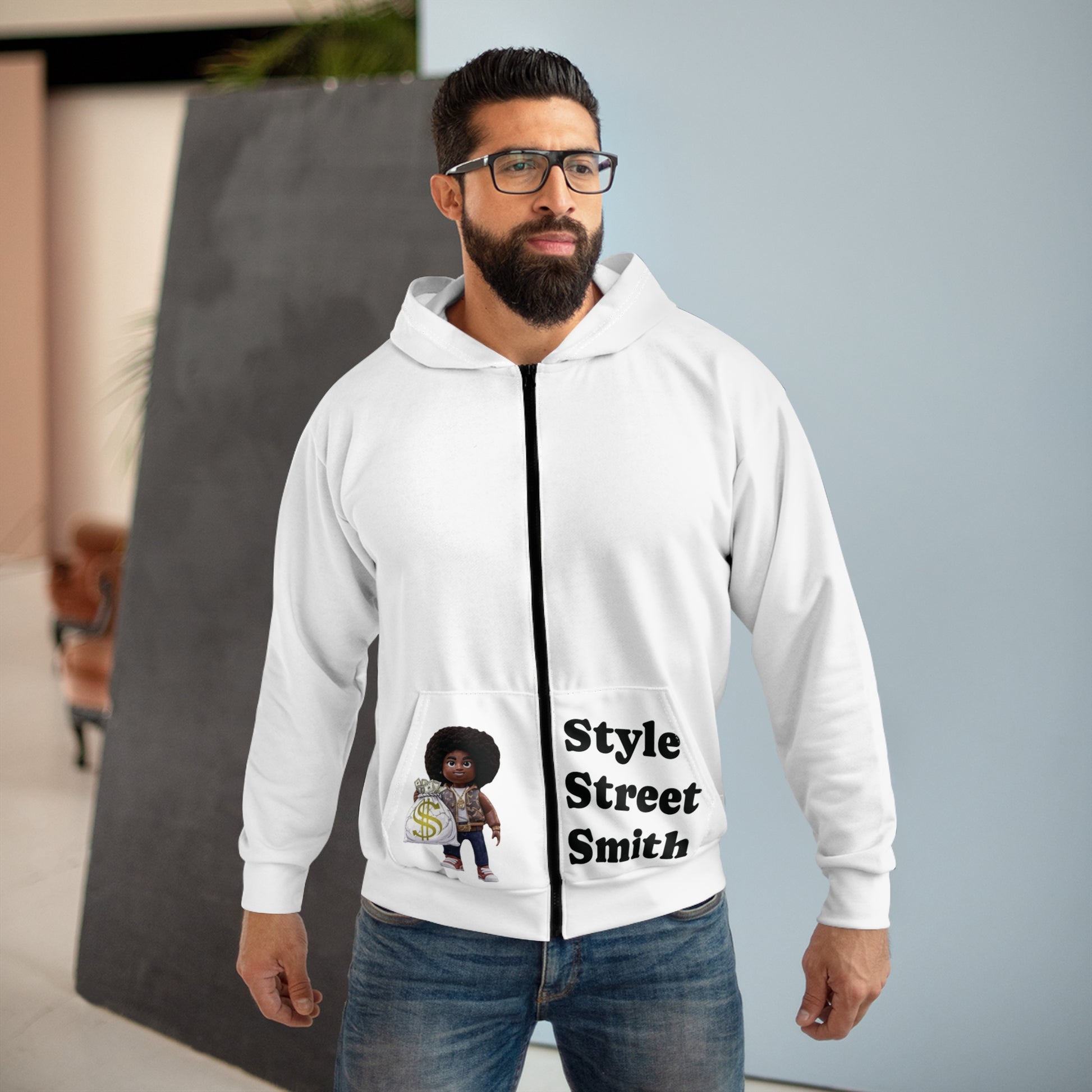 StyleStreetSmith Unisex Zip Hoodie, Street Style Hooded Sweatshirt, Fashion Statement Jacket, Urban Cool Outerwear, Hipster Apparel